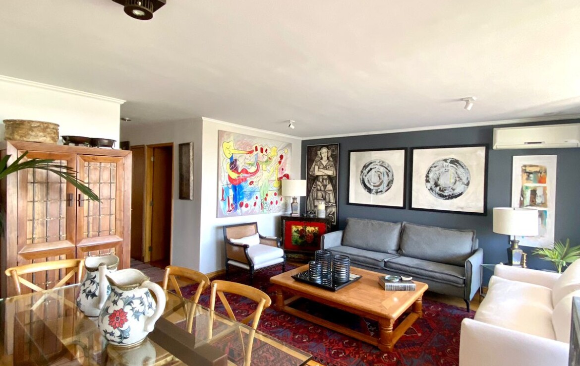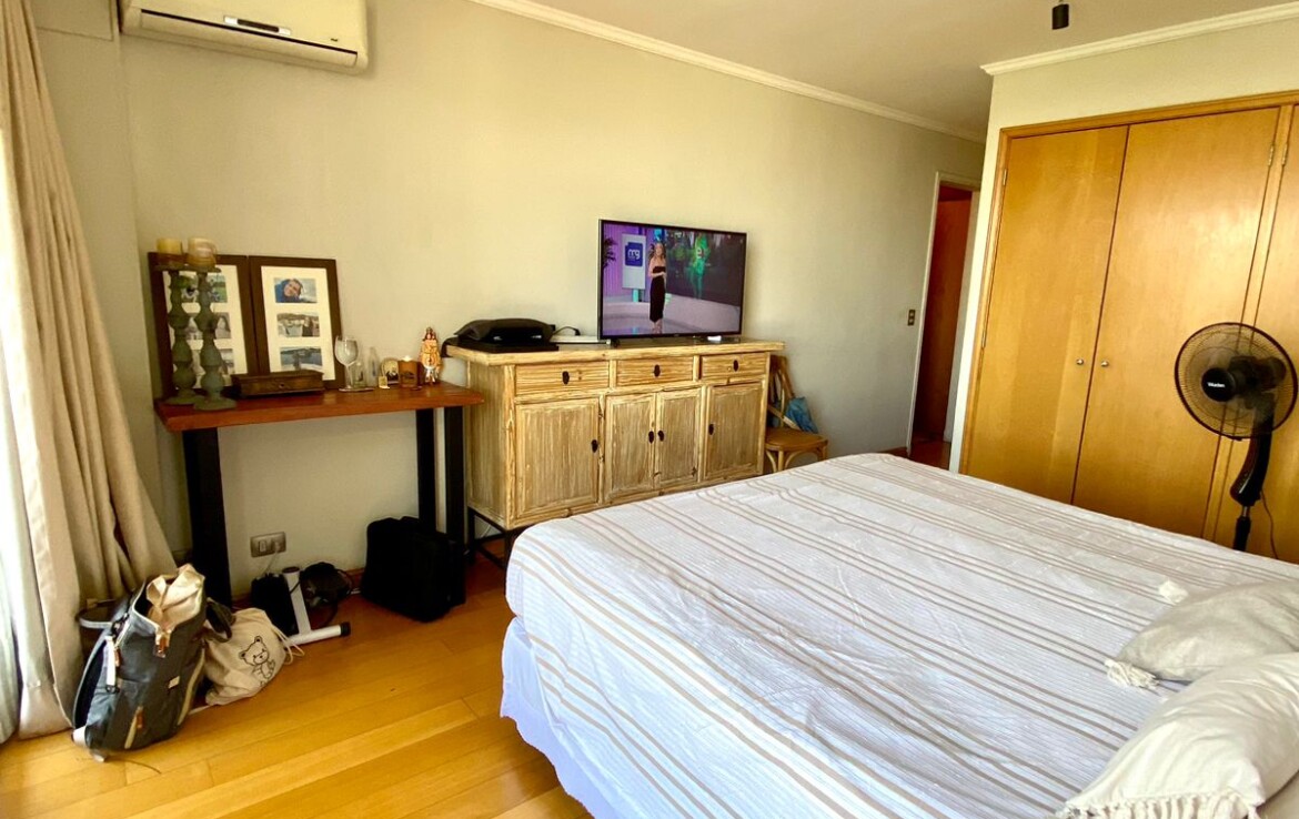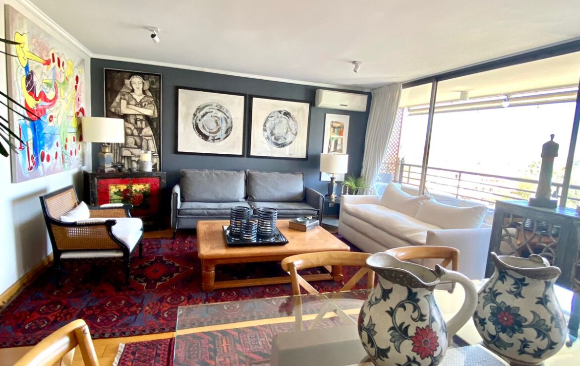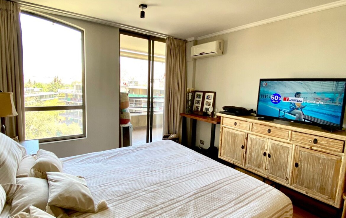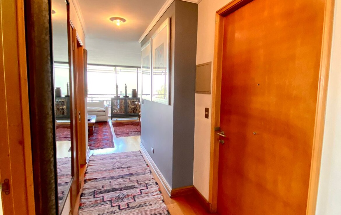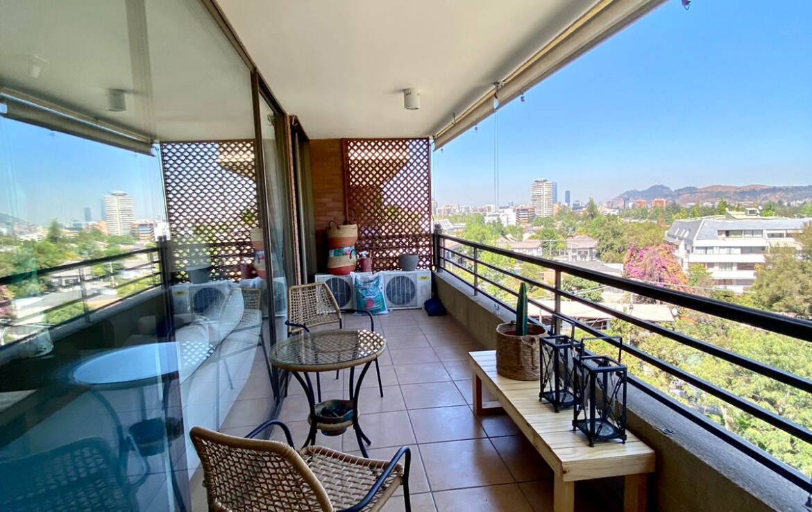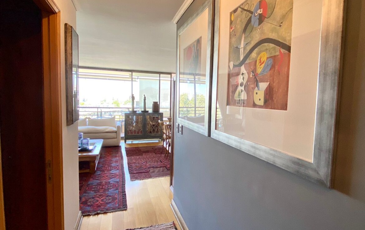 Hall acceso, closets visitas, living comedor grande con salida a gran terraza con linda vista a plaza, 3 dormitorios (principal en suite con walking closet), 3 baños, sala estar, cocina, logia cerrada, 2 ESTACIONAMIENTOS.